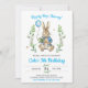 Easter boy birthday invitation features cute Rabbit with eucalyptus leaves. This design is ideal for someone having a Rabbit themed birthday party.