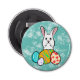 Cute egg-shaped rabbit standing on top of Easter eggs to celebrate Easter