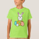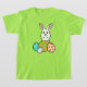 Cute egg-shaped rabbit standing on top of Easter eggs to celebrate Easter