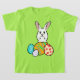 Cute egg-shaped rabbit standing on top of Easter eggs to celebrate Easter