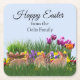 This holiday paper coaster features a classic Easter Rabbit design. The bunny rabbits in the garden design were created from a handset collage. Add your greeting and family name to this beverage coaster. Use it for your Easter gathering.