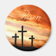 Sunrise crosses on Calgary with the text Risen Easter photo magnet