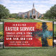 Advertise your Easter Service Times with this large banner featuring a cross with a red an orange painted background.