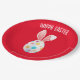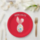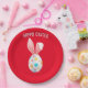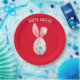 "HAPPY EASTER" PAPER PLATES WITH BUNNY EARS & SPECKLED EGG.
