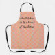 This adult apron has an Easter design of split circles on lines in green, blue, and purple on a field of orange. The text is customisable.