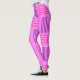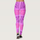 These leggings have a mid-century modern design that looks like a weave with purple and pink lines on a field of lighter purple.