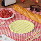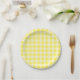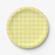 Easter yellow and white chequered gingham pattern paper plates. Cute Holiday and celebration party supplies. Disposable dinner party supplies printed for baby shower, birthday, Christmas, wedding, bridal shower, bachelorette, housewarming, graduation celebration etc. Strong quality for adults and children. Check plaid print pattern. Picnic style tablecloth design. Also available as napkins. Change the quantity to get the cheapest price per plate.