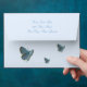 These pretty, little butterflies are relatively dull on the underside, but brilliantly iridescent blue on the top of their wings. The envelope matches a baby shower invitation and a number of other items including an address label.