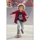Sleek, stylish and bold skateboarder abstract design. The design features a colourful and abstract image of a skateboarder. The image is made up of bright colours and bold lines with a modern and edgy vibe, reflecting the personality and style of the skateboarder. This design is perfect for anyone who loves to skate and express themselves through art. "EASY DOES IT DO IT EASY" in a purple sprite graffiti and yellow city lights font.