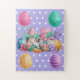 This colourful Easter puzzle has two cute gnomes surrounded by Easter eggs on a purple polka dot background. It is specially designed for young children with very large puzzle pieces so the kids can solve it without getting frustrated.
