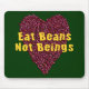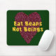 Heart made from red beans forms a backdrop for the words "Eat Beans Not Beings" to spread the message that living creatures are not food and we should eat our veggies instead.