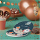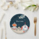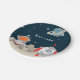Cute birthday paper plates with a space theme. The image shows a rocket ship that has landed in a planet. The astronaut can be seen behind some rocks. The illustration looks like it's in three dimensions but this is only a print. Illustrated and designed by Patricia Alvarez.