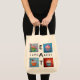 The printing came out very well, better than I had anticipated. The natural color fabric is sturdy with strong seams and comfortable handles. This tote fits easily over my shoulder. As it is filled, the bottom flattens out--very cool! I would buy this product again. This grocery tote holds a lot of groceries! The image quality was very good. The colors were a little darker than I had expected. The darkness may have been due to printing on a natural color fabric rather than on white. The cat design is attractively centered on the tote. The spirit of the design is very lively, just as it appears on the Zazzle website.