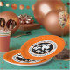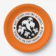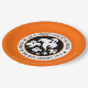 This Halloween party paper plate in orange, black and white colours features a ghost ornament and "Eat, drink and be scared" lettering (can be changed to any message you like).