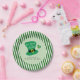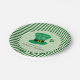 This St. Patrick's Day Party paper plate features a whimsical and bold graphic of a leprechaun's hat with the text: Eat, Drink and be Irish. The design appears in the centre of the plate with a bold green and white striped border.