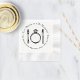 Wedding reception cocktail napkins feature a fork, knife, and diamond ring place setting and text "Eat, Drink and Be Married! Thank you for celebrating with us." Black, white, and platinum grey colours.
