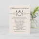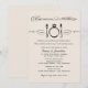 Black and ivory / cream wedding rehearsal and rehearsal dinner invitation design with an eat, drink, and be married theme in elegant and vintage mixed typography with diamond engagement ring place setting scroll feature.