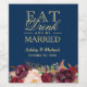 Eat Drink and Be Married Burgundy Floral Navy Blue Wine Label