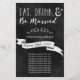 This modern and cute wedding invitation suite features a chalkboard look with "Eat, Drink, & Be Married" in handwritten text.