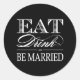 Black and White - Eat, Drink and Be Married Favour Stickers - Created by Colourful Designs Inc. Copyright 2013. All text can be modified.