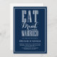 Eat, Drink and Be Married Navy Blue Wedding Invitation