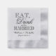 Eat drink and be married silver coined wedding Napkins . Elegant script typography design for classy wedding party. Stylish handwritten calligraphy combined with chic formal fonts. Customisable colours. Personalised with name of bride and groom plus date of marriage. Beautiful wedding party supplies for couple.