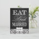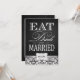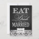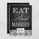 Eat Drink and be Married, elegant wedding invitations Black and white damask with elegant black fibre background..
