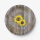 Eat, Drink and Be Married Wood and Sunflower Paper Plate