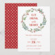 Winter Wreath Eat Drink and Be Merry Christmas Dinner Party Invitations. Background white colour can be changed. Floral wreath with winter berries.