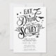 This stylish invitation features a black and white typography design with the words "Eat Drink and be Scary. It's the perfect way to add a touch of Halloween fun and sophistication to your party and let your guests know they're in for a frightfully good time.
