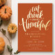 Celebrate Thanksgiving with your loved ones with this stylish and elegant invitation. The invitation features a white script calligraphy font with the saying "eat, drink, and be thankful" set on a burnt orange background. The perfect way to invite your guests to a memorable evening of food, fun, and fellowship.