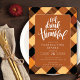 This modern Thanksgiving invitation features a fall colour buffalo plaid background in brown & black with the saying "Eat, Drink, and Be Thankful" in a stylish font. It's the perfect way to invite your family and friends to celebrate the holiday with you.