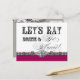 COLOR PALETTE: Fig, raspberry, grey, black & white. DESIGN COLLECTION: Elegant and fun fonts announce the message, "Let's eat, drink and get married!" on a delightful whimsical Bridesmaid invitation postcard. In a clean, crisp, fig, grey, black and white colour palette it's the best of vintage with a modern twist. Add your personal message on the reverse side. Made with a variety of fonts, including a circus poster style font, hand calligraphy font, swirls and vintage etched printer's decorative ornaments for a modern vintage style.
