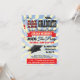 Eat, Drink and Graduate with this super fun, poster style graduation party invitation. Features fun typography, banner and a cap tossed in the air against a sunburst background. Great for any graduate! Hand drawn illustration by McBooboo.