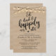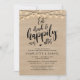 Planning a happily ever after dinner and dancing celebration at the wedding day? Invite your beloved guests with this "Eat, Drink and Happily Ever After, Wedding Dinner", in modern rustic script design (cottage brown wood, string lights background) themed, indicating the date, time, venue, and RSVP details.