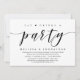 Modern Script themed, wedding elopement invitation card (Eat, Drink and Party). It is perfect for your wedding elopement casual lakeside celebration.