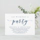 Modern Script Classy Navy Blue theme, wedding elopement invitation card (Eat, Drink and Party). It is perfect for your wedding elopement casual lakeside celebration.