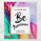 Party / wedding thank you wine bottle labels which say: eat drink and be awesome. With a fancy artistic abstract design. Watercolor painting with the colours mixing and mingling creating a nice flowing marbled pattern. A white frame with a faux gold foil border layered over top with your personalised text written inside.