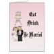 Cute Saying Eat, Drink, Be Married on T Shirts and other unique gifts. Design has a bride and groom, wedding cake, and wine glasses. Also available are mugs, totes, hats, steins, travel mugs and much more.