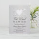 Simply and elegantly understated, this lovely white silverware and china dishes in the shape of hearts invites your guests to an anniversary celebration with "Eat, drink and be Married!" White elements and black typography, on a subtly shaded silver grey background, this design is shown here on the upgraded metallic paper, but can be changed to basic paper stock for a more affordable option.