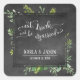 Eat Drink & Be Married Greenery on Chalkboard Square Sticker