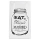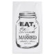 Vintage mason jar wedding favour gift bags with quote. Eat drink and be married. Cute country chic design with weathered print. Rustic glass jar with elegant typography. Personalised with stylish letters for name or monogram of bride and groom plus date of marriage. Perfect thank you give away token / souvenir bags for thanking guests. Classy weddings accessories and trendy decorations for couples. Black and white or custom colour background.