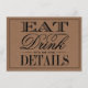 Eat, Drink & Be Married Rustic Kraft Wedding Detail Cards.