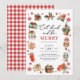 Invite your guests with this cosy winter invitation featuring watercolor Christmas holiday elements in red, green and white.