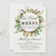 Holly Christmas Floral Wreath - Eat, Drink, and Be Merry Calligraphy Typography Script Christmas Party Invitation.