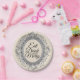 Chic Christmas paper party plates with a victorian silver photo frame adorned with a wreath of silvery grey leaves on an ivory background and the text 'Eat Drink and be Merry' in modern typography. Matching products such as invitations, stickers and party supplies are available in our store. If you need any help please contact us through our store.