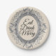 Eat Drink Be Merry Holiday Silver Leaves Wreath Paper Plate