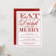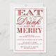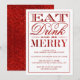 Eat, Drink & Be Merry Red Glitter Christmas Invitation
