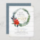 Let's eat! A rustic, elegant dinner party invitation. Perfect for a holiday party, Christmas cocktails, corporate events, weddings, and more! "Eat, drink, and be merry" is displayed in classic serif typography with chic gold script lettering for a modern twist on a traditional theme. A floral watercolor wreath frames the text with deep green foliage, winter berries, and a red poinsettia flower. The background is a weathered white wood image with faux gold glitter dustings. The Christmas wreath and rustic wood give a welcoming feel to this invitation. These paper sheets reverse to a teal blue colour with a tasteful white diamond pattern. As part of the budget selection on Zazzle, this sheet isn't a standard invite size or paper quality. If you want this design on an invitation card you can find it in our store or use the Zazzle Make Machine to transfer it onto the product of your choice.