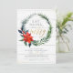 Let's eat! A rustic, elegant dinner party invitation. Perfect for a holiday party, Christmas cocktails, corporate events, weddings, and more! "Eat, drink, and be merry" is displayed in classic serif typography with chic gold script lettering for a modern twist on a traditional theme. A floral watercolor wreath frames the text with deep green foliage, winter berries, and a red poinsettia flower. The background is a weathered white wood image with faux gold glitter dustings. The Christmas wreath and rustic wood give a welcoming feel to this invitation. Cards reverse to a teal blue colour with a tasteful white diamond pattern.